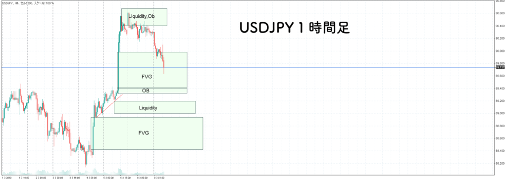 上昇否定陰線+FVGが出て、明らかに大口投資家の痕跡が確認できます。