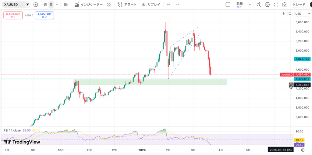 金は水〜金の3日で500ドル超の下落を演じる等、死人が出そうな相場展開が続いています。