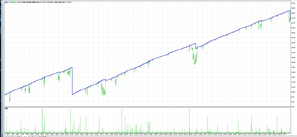 下記はTDSを使ったバックテストですが、実稼動では指標オンオフをしたりゼロ口座を使ったりと、バックテスト環境が再現されるわけではない為、最低限のデータのみ掲載します。