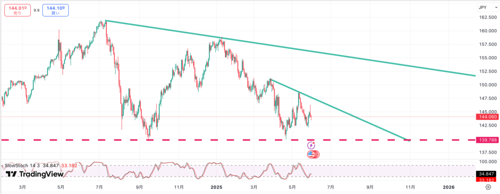 ドル円は大きなディセンディングの中にさらに小さなディセンディングを形成しています。